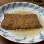がんす特有のパン粉のザラつき感はそのままに、おでんの具材としてしっかり仕上がっている。これもまた、店主の試行錯誤の中でもっともよいタイミングを模索した結果、たどり着いた食べ方なのだそう。これまでに“パン粉を感じるおでん”というものには出会ったことがないように思う。