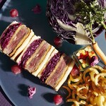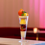 フェンネルやカルダモンなどのスパイスを利かせ、サクランボの甘みとのマリアージュを楽しめる大人のミニクロワッサン「サクランボのフルーツサンドイッチ」のほか、「枝豆のチュロスとパルマ産プロシュート」「ズッキーニとアオリイカのキッシュ」「フルーツトマトのブリュレ」など、初夏に旬を迎える食材をふんだんに使用した贅沢なメニューが並ぶ。