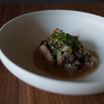さっぱりとしながらも旨みの深いマグロと付け合わせがよく合って、とても楽しい一皿。ワインがどんどん進んでしまいます。
