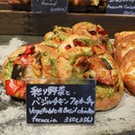 店内には、One Hundred Bakeryの食パン「純生」(864円)やフランス産発酵バターが香る「天使のクロワッサン」(302円)、あふれんばかりに具材の詰まったクロワッサンサンド、旬の果物を使ったフルーツパイなど、色とりどりのパンが揃っています。