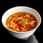 筍のシャキシャキ感と辣油と胡椒が効いた酸辣湯、