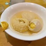 レギュラーのチキンカレーと魚介カレーも時期によって内容が変わります。この日のチキンはよりココナッツ感が強いもので、魚介はアサリのカレーなのですが南インドのラッサム的な仕上がりで以前食べたときとかなり違い、どちらも面白く、おいしいです。