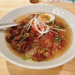 こちらもスープから飲んでみると、これまた全然違う味なのがびっくり! 牛スジ煮込みの甘みがスープにしっかり溶け出して、実にまろやかで深い味。トッピング次第でこんなに味の変化があるスープは初めてです。