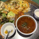 メインは「マトンジャハーンギリーコールマー」2,200円に「ルーマーリーローティー」550円を合わせて。余談ですがメニューのカタカナ表記にもこだわりを感じます。例えばマサラですが、正式にはマサーラー。インドの方は早口な方が多く、マサーラーもマサラに聞こえるということでマサラが一般的に使われていますが、あくまで正式にマサーラーと表記されているというあたりも流石だなと。マサーラーに限らず、すべてのメニューでそれを感じます。