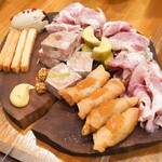 さて、今回は、日々20品ほど用意されるメニューの中から代表的なものを紹介してもらった。まずはシャルキュトリーの盛り合わせ。フレンチ好きなら、この一皿を見ただけで、たまらないはずだ。