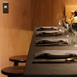 2Fのテーブル席は落ち着いて食事するのにぴったりだが、少人数での利用なら、1Fもいい。キッチンの正面に席が設けられているのは、シェフがお客様とおしゃべりしたいから。料理と自然派ワインに、シェフとのおしゃべりが加わると、より刺激的になるだろう。五感でクリエイティブな時間を味わってみよう。