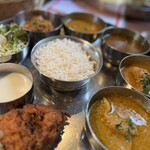 南インド定番の定食であるミールスは、ランチタイムだとベジタリアン仕様のものがAセットで900円、ノンベジがBセット1,050円と、まずその安さに驚きます。Bセットは日替わりの2種カレーにサンバル、ラッサム、サラダ、パヤサム(南インドのスイーツ)、ワダ(南インドの甘くないドーナツ)、バスマティライスに選べるパンまで付いているという充実の内容。