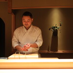 2021年11月、桜坂駅から徒歩2分ほどの閑静な一角に、高水準の江戸前寿司が食べられる「枯淡」が開店しました。店主の野口 和暉氏は、今は無き名店「鮨 水谷」で修業し、東京で絶大な人気を誇る「鮨 はしもと」で6年間研鑽を積み独立。福岡県糸島市出身ということで、東京ではなく福岡を新天地に選んだそうです。野口氏は20代後半という若さながら、貫禄のある落ち着いた接客にも定評があります。