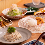 4品が終わるとアラカルトを頼めるのですが、アラカルトでおすすめをあげるとしたら「うなぎ春巻」(ぎっしりウナギが詰まっていて中華系スパイスが利いてパリッパリ)、揚げた手羽先(驚くほどジューシーな手羽先。こんがり揚げた皮がクリスピー)でしょうか。量少なめにしていろいろお出ししますよ、と気遣ってくださいますが、量少なめにしなくてもいろいろ出してください!と言ってしまいます。