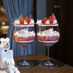 9月11日からは期間限定メニューとして秋の新作が登場。ファンが楽しみにしている季節のパフェプレートは「“葡萄(えび)色”くまプレート」(3,850円)として5日間限定で提供されます。テーマは、ワインの原料となる葡萄の花言葉「陶酔」。葡萄のパフェを中心に、イチジクのサバランやカシスオレンジのパンナコッタ、ラムレーズン入りチーズタルトなど、お酒にちなんだスイーツが一つのプレートに盛り込まれています。