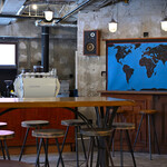 広々とした店内は、空間を贅沢に使い、打ちっぱなしのコンクリートとヴィンテージのインテリアの調和が素敵。世界各国のアンティーク什器やオリジナルカスタムのエスプレッソマシーンなどにオーナーのこだわりを感じます。