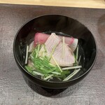 『加茂茄子の揚げ出し椀』メジマグロと鰹の出汁、青柚子