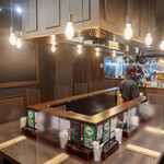 シックな雰囲気で、フレンチ気分でラーメンを楽しめる店内にはコの字形のカウンター席の他、テーブル席も用意されていて一人でも家族でも使い勝手が良さそうです。きれいな店内で、おしゃれな海老ラーメンを味わってみてください。