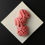クライマックスは、ハラミやカイノミなどの肉肉しいお肉たち。「サシが強すぎない、赤身のおいしい肉を選んでいます。A5とかのランクは別に気にしていませんね」と李さん。ブランド牛にはこだわらず、その時々で気に入った肉を仕入れているそうで、取材当日は茨城の牛。写真は、極ランプと極イチボで、ご覧のようにカットが実に端正だ。