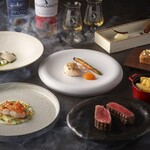 メニューには「やまゆりポーク」の豚肩ロースや「横濱ビーフ」のサーロインなどのグリルをメインにした4コースメニュー(9,500円)、5コースメニュー(14,500円)、6コースメニュー(20,000円)の3種類のコースを用意。セントラルキッチンの鉄板を生かし、炭、火、スモークの風味を五感で感じる料理がいただけます。