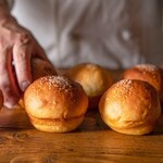 パンは生地の吸水を多くした多加水製法により、もちもちした食感が特長。また、生地を低温でじっくり熟成させることで、小麦本来の香りと旨みを引き出しています。