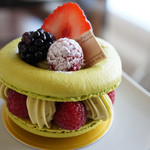 アーモンドのメレンゲにコクのあるホイップクリームを合わせ、外側をたっぷりの洋栗マロンペーストで包んでいます。メレンゲのサクサク感と香ばしいアーモンドの風味、そこに濃厚なマロンペーストが加わり、絶妙なおいしさに! ホイップクリームが甘さ控えめなので、栗本来の甘さが引き立ちます。栗が旬の今、ぜひ味わっていただきたいモンブランです。