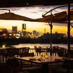 目の前に広がる海と、みなとみらいを一望できるオーシャンフロントレストランである同店には、海の香りや風に包まれて絶景を眺められるテラス席や、ゆったりとした時間を過ごせるバーカウンターなど、シーンによって使い分けられる居心地の良い空間が用意されています。テラス席は愛犬との同伴も可能。また、自家用船で来店できる専用の入口もあります。