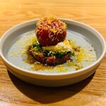 コースには、レアなお肉と沢庵をご飯と海苔巻きにした「トロタク」や、一夜干ししてから素揚げした「阿波尾鶏の手羽唐揚げ」、「サーロインとトマトのしゃぶしゃぶ」など、多彩な料理が盛りだくさん。長年培ってきた技に茅森氏のオリジナリティが合わさった創作料理は、お腹も心も満たしてくれそうですね。