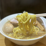 このインパクト抜群のスープに合わせるのは、全国の人気ラーメン店御用達「三河屋製麺」オリジナルのストレート太麺。小麦の香り豊かでモッチリした麺は、しっかり主張するスープに負けていません。