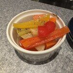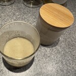 その六本木でオープンから10年、サービスで活躍した藤田朋希氏が独立し、10月11日、麻布十番にオープンしたのが「真皿」です。開店2日後にうかがいましたが、8席のカウンターと2つのテーブルの店内は早くも満席。現在、5,500円と7,700円のコースがあり、20時以降はアラカルトも可。2軒目にふらりと立ち寄って、ワインと点心といった使い方もよさそうです。