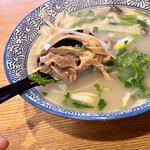 白濁したスープは濃厚な肉の旨みに満ちているが、後口が驚くほどさっぱり。本場ではもう少し脂っこさがあるそうだが、日本人にも食べやすいように脂っぽくならないよう工夫しているのだそう。