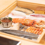 店主は、寿司を握り始めて約20年のベテラン。「とうふ屋うかい」で修行を積んだ後、都内の老舗寿司店で寿司に転向し、「シェラトン都ホテル東京」や「ハイアットリージェンシー東京」で寿司料理長を務めた経歴の持ち主です。