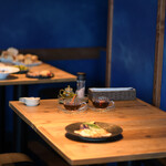 ブルーの壁と木目を基調とした店内は、温かみのあるスポットライトで落ち着きのある居心地の良い空間。28席ある座席は、モーニングやランチの開始早々、満席になってしまうことも。お腹を空かせて、早めの来店を!