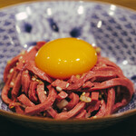 他にも、ハツの凝縮した旨みを自家製のたまり醤油がさらに引き立てる「ハツ刺し たまり醤油」770円や、ウルテと九条ねぎの小気味よい食感がクセになる酒肴「ウルテ刺し 九条ねぎ添え」950円など、お酒のすすみそうなメニューもラインアップ。