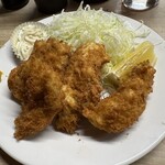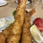 カリカリサクサクに揚げられたエビふらいは、とにかく身が厚く引き締まっていて、食べ応えあり。