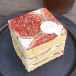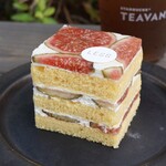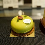 こちらのタルトは、表面の格子模様から察するにメッシュのタルトリングを使って焼成を行っているのだろう。薄く敷き込まれた生地はサクサクに焼き上げられている。中のガナッシュは、酸味、渋味のバランスが良く、コクがあるナッティーな香味のチョコレートにキャラメルが加えられ、カカオの旨味と十分な甘さが感じられる。トッピングのジャンドゥーヤはまろやかな味わいで、全体を優しくまとめ上げる役割を果たしている。