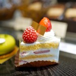 ショーケース内の左側には5〜6種類の生菓子が並び、右側には、チョコレート系のスイーツが並ぶ。