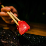 握りはまぐろ赤身。まぐろはすべて、アイルランド産の本まぐろを使用している。脂ののりもほどよく、国産に負けない旨みを有している。酸味と鉄分の心地よい赤身は、やはり寿司屋の醍醐味だ。