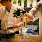 そしてうれしいことに、飲み物もリーズナブルなうえに、品ぞろえも豊富。ビールやハイボールなどは600円。グラスワインは900円~。そして「モエ・エ・シャンドン」がボトルで6,000円と、百貨店などで購入するのと変わらない。グラスで1,200円とは、シャンパンが一番安く飲める店と言えるかもしれない。というわけで、お酒で高くなってしまうのではという心配は無用。お腹いっぱい食べて存分にお酒も楽しめる、幸せな店なのである。