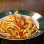 また「スポルカチョーネ」といえば、ジェノヴェーゼのリングイネがおなじみだが、ベーシックなトマトソースのパスタも、井上イズムを感じさせる佳品だ。曰く「トマトソースのパスタって家庭の味でしょう。だから、麺もあえてメヌッチ社の、表面がツルッとし安価なパスタを使っている」そうで、いたずらに高級素材を使うのではなく、料理の持つ一つ一つの“らしさ”を損なうことなく、その良さを最大限に引き出そうと考えられている。
