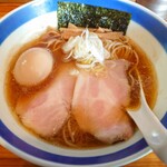 店主の葉山和孝氏は、独学でラーメンを学び、横浜の味噌ラーメン店「拉麺大公」2店舗を人気店にのし上げた実力の持ち主。系列店3店舗目の同店では煮干し系醤油ラーメンを中心に展開しています。