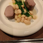 特に感動したのが下に敷かれたチリビーンズだ。「フレンチでチリビーンズ?」と驚くなかれ。それこそが水口シェフの感性といえる。フレンチにこだわることなく、届いた食材から仕上げたソーセージに一番合うものを考えた結果のチリビーンズだ。辛味を抑えたチリビーンズなので、ソーセージと一緒にいただくとマスタードとはまた違った味わいに変化し、結構な大きさだがするりと食べることができてしまった。