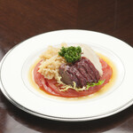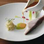 宮崎慎太郎さんがオーナーシェフを務めるカウンターガストロノミーで、早速ミシュランガイド一つ星として掲載。素材を生かしながらも、味付けと香りのアクセントが秀逸で、印象に残るメニューばかりです。見た目のプレゼンテーションも美しく、テーブルに運ばれた時には感嘆するほど。「野菜の一皿」は、それぞれの素材に適した調理を行っていて、その旬味を堪能できました。カマチ陶舗の有田焼にもよく映えています。ますます予約がとれなくなるレストランになりそうです。