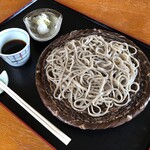 「こそば亭」では、妙高山麓にて古くから栽培されてきた在来品種「こそば」を使ったそばを提供しています。低速回転の石臼でひき、店主が心を込めて打ったそばは、昔ながらの懐かしい味です。