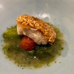 この日は、一口目に相応しいフィンガーフードに、海鮮、ポタージュを盛り合わせた。見た目の美しさにも目を見張る一品だ。