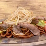 お店のオススメは鶏の肝とレバーとハツと砂ずりの入った「肝玉焼きそば」980円とのことですが、ジロリアンとしては「豚焼きそば」980円ですね。無料のトッピングは、もちろんヤサイ、ニンニク、脂の全部増し。