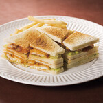 まずは、中段、下段から紹介。中段・下段に並ぶセイボリー(食事系)は、いちごの香りとの相性を軸に考えられたものが並ぶ。