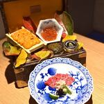 『料理は先付けにツミレの椀と小鉢で出された前菜がどれも美味しく期待値がかなり高まる。