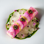 「DEK 青山」が提供するのは、創業約100年の青果仲卸の老舗「船昌」のバイヤーが厳選した野菜やフルーツをふんだんに使った料理。毎日仕入れるみずみずしい青果物を、そのおいしさのポテンシャルを最大限に生かした調理法で、専属シェフやパティシエなどが絶品の一皿に仕立てます。