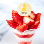 栃木県産「とちあいか」をたっぷりと使用した「苺“とちあいか”のパフェ」。グラスの中には自家製イチゴアイスやレモンジュレなどが重なり、甘味と酸味のバランスが良い「とちあいか」の魅力を生かしたパフェになっています。