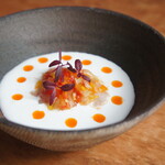スープドポワソンをカレーに仕立てたお店、他にもいくつかあるのですが、その中でもこちらは丁寧な仕事とあえてワイルドな部分も残した個性が感じられる味です。シェフに聞いたところカレーは独学とのことですが、だからこその自由さと、元々持っているセンスが感じられるスープドポワソンカレー。