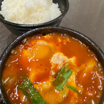 トゥルチギは韓国南東部にある慶尚道の郷土料理。かつての貴族たちが客人をもてなす際に振る舞ったという逸話も残る。店では、肉の旨みが染み出た煮汁に海苔付きのライスやチーズ(各200円)を加え、ポックンパという韓国風チャーハンにするのが〆の定番のひとつ。