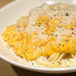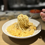 麺はキタッラという種類のパスタを使用。ソースのコクのある濃厚な味わいをしっかりと受け止められるキタッラの組み合わせは抜群の相性の良さを誇ります。