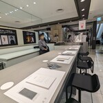 新店舗はシンプルでモダンな外見、店内は黒やグレーを基調としたシックな内装で「和」を感じる造りになっています。店舗のロゴは、型にはまらない独創的な商品を生み出すという意味が込められているそうです。