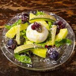 カジュアルな小皿料理は440円から。「トリッパと白いんげんの煮込み」880円は、柔らかく煮込んだ濃厚なトリッパが、しみじみと奥深い味わいです。他にも「牛タンのタリアータ」1,210円、「豚タンカツレツ タルタルマヨネーズ」1,100円など、お酒のすすみそうなメニューが並びます。締めにはシェフ自慢のパスタ「水牛モッツァレラと揚げなすのスパゲッティ ポモドーロ」1,480円、「雲丹とアオサのクリームソース リングイネ」1,480円もおすすめ。子連れでも利用しやすいよう「キッズポテト」550円や「キッズスパゲッティ」880円など、子供向けメニューも用意しています。